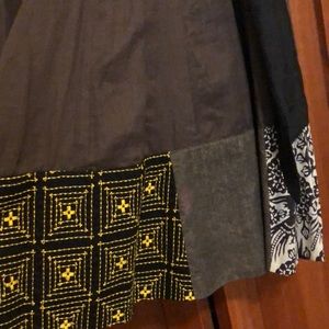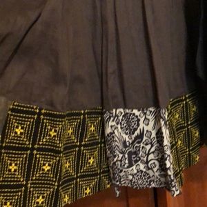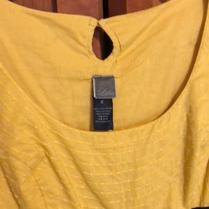 Cute and flattering style dress. Some discoloring near armpits and skirt as shown. Measurements: 18" bust, 15" waist, 39.5" long.