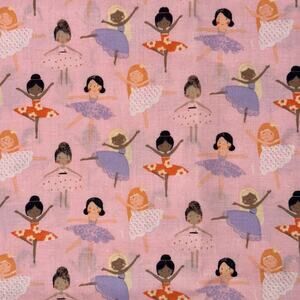 Little Ballerinas on Pink Cotton Fabric - Pink background with ballerinas in shades of pink and purple.