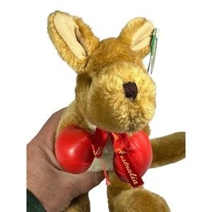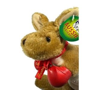 This cute little kangaroo has his boxing globes but no briefs. The tag is still attached to his ear. He doesn't really stand up well. He leans towards the front.