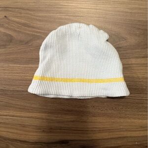 Keep your child warm and stylish with this cozy knit beanie featuring a charming yellow stripe. Perfect for any outing.