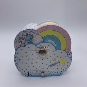 This Little Big Room by Djeco Unicorn Dream Treasure Box Musical plays the popular "The Blue Danube" tune and is an enchanting addition to any collection. Made in Paris, France, it features a magical unicorn design that will spark joy in anyone who sees it. The treasure box is perfect for storing small items and trinkets and makes a great gift for collectors and unicorn lovers alike. The item is new and unused, ready for its new owner to cherish. # BC10645301200005