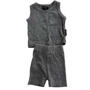 Little Bipsy Charcoal Gray Ribbed Tank & Biker Shorts Outfit Set Size 0-3 Months