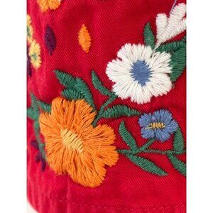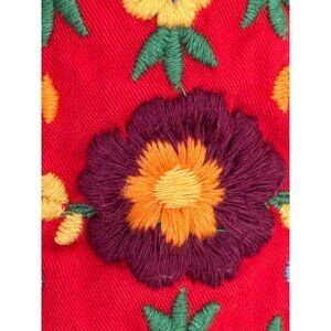 Little Bird Girls Red Dress with Floral Embroidery at Hem Size 5-6 Years Boho - Preowned - several small black dots on front of dress as shown in photos