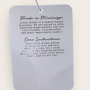 Pillows are machine washable (Cold water, Delicate Cycle- Fluff, and Air Dry)