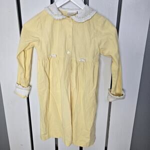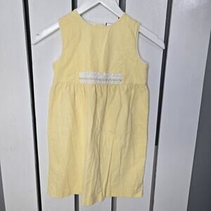 Good Condition, Girls 6 Linen Blend Soft Yellow Dress, Dress Has White Trim with Embroidered Flowers, Jacket has Ruffled and Embroidered Collar and Sleeve Cuffs