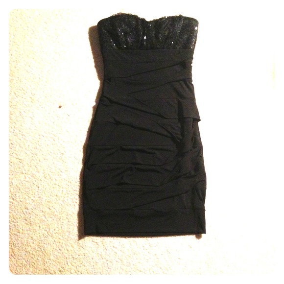 Black polyester, sequin top, layered texture, form fitting, short...perfect for any LBD occasion!