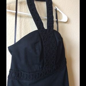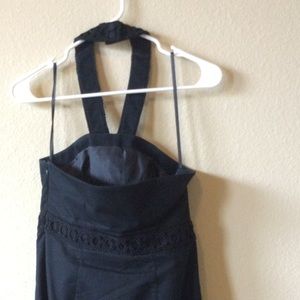Perfect for any occasion! Nice lace detail on front and around halter neck. Knee high length and backless.