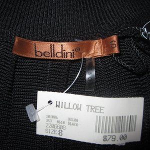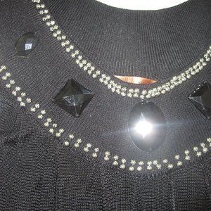 Belladini short dress. Scoop neck with embellishments. Ribbed, solid black fabric, sweater-like fabric, but very light. Brand new with tags. Retails for $79.