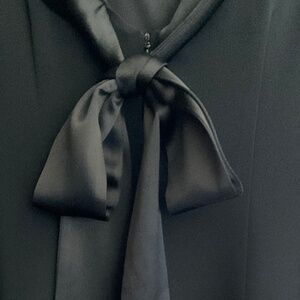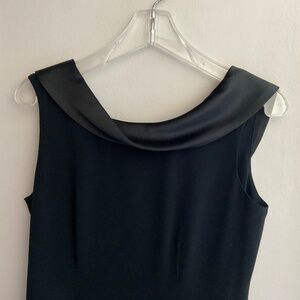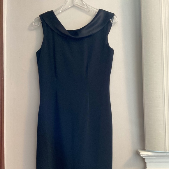 Jones New York LBD with satin collar , which ties in the back. Size 4. Recently dry-cleaned. Excellent condition. Comes with a Saks Fifth Avenue garment bag.