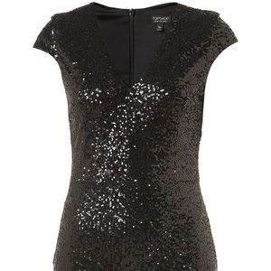 Gorgeous little black party dress from Topshop. Features capped sleeves, vneck, and all over sequins. Excellent preowned condition. Only worn once!
