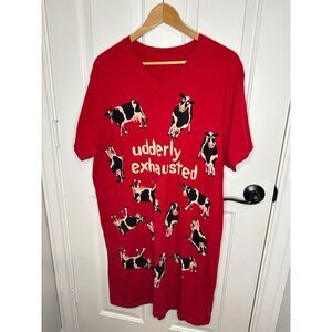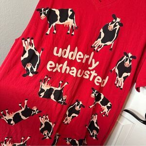 tags/ udderly exhausted , red , cow , cows , indie , western , southern , farmhouse , novelty print , sleep shirt , sleep dress , t-shirt dress , comfy , cozy , loungewear , lounge
