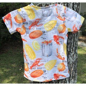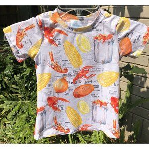 Little Boy T Shirt Crawfish Boil Print 6-7. Soft fun shirt for play or casual wear. 95% cotton 5% spandex