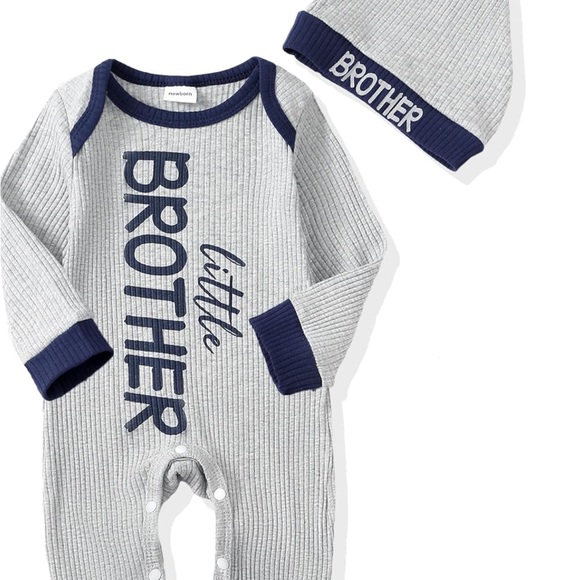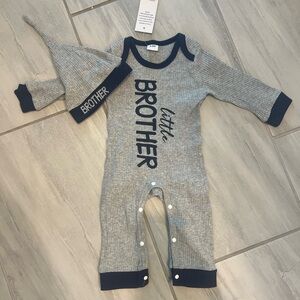 Charming set with 'little brother' design. Soft fabric for comfort. Includes matching hat. NWT