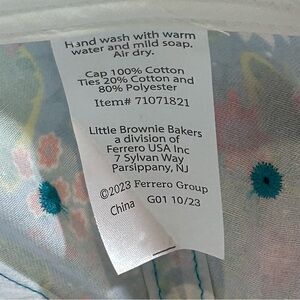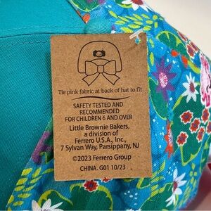 NWT! Accessorize your outdoor adventures and travel escapades with the Little Brownie Baker Girl Scout Cookie Reward Hat. This adjustable baseball cap, adorned with a charming floral pattern and pink ribbon, offers a personal touch to your headwear collection. The turquoise cotton fabric provides both comfort and durability, making it an ideal companion for any journey.