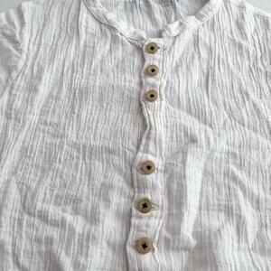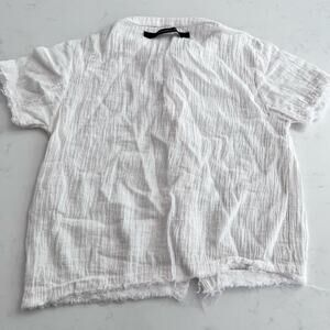 .Little Creative Factory boys ecru neutral muslin short sleeve button down shirt 4yrs. Raw edge. A perfect summer staple.
