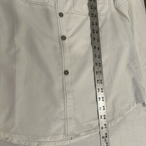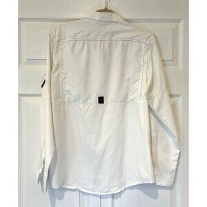 Little Donkey Andy Men's Power Dry Shirt with white color and classic collared design with a spread collar style offer a clean, timeless look that's perfect for hiking, fishing, or any outdoor activity. Made from high-quality polyester, this shirt is engineered with both quick-dry and waterproof features, making it ideal for all seasons.This regular fit, size M shirt boasts a 42-inch chest size for a comfortable wear. Long sleeves, button-up closure, and additional accents like loops enhance its functionality and style.. Easy to care for, it's machine washable, ensuring that it remains a staple in your wardrobe for many adventures to come.Previously worn, no visible flaws, little to no signs of wear