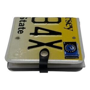 The Little Earth New Jersey License Plate Photo Album Binder is a small metal photo album binder with a retro theme. It features a snap closure, black leather handle/strap, and silver hardware accents. The exterior color is multicolor with the logo of Little Earth branding. This unique photo album binder is perfect for women who appreciate vintage-inspired accessories.