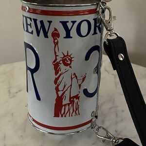 Little Earth New York License Plate Purse Black Strap Clutch Handle Recycled NWT