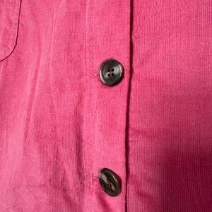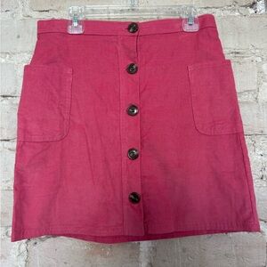 Chic raspberry mini skirt with button-front. Features practical pockets. Ideal for casual outings.