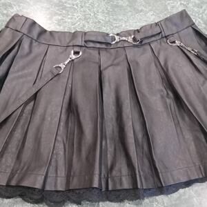 Little For Big Size XL Black Pleather Skirt With Straps & Silvertone Handcuffs