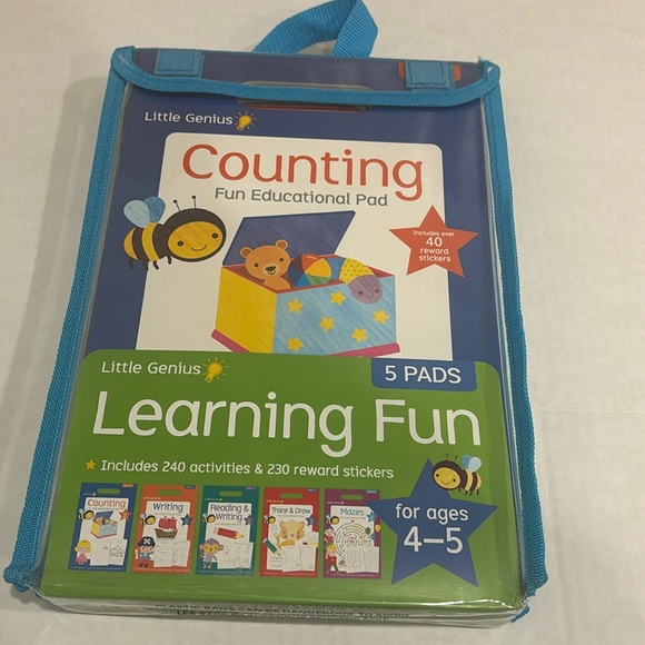 Little Genius Learning Fun (Counting/Writing/Reading & Writing/Trace & Draw/Mazes) New .