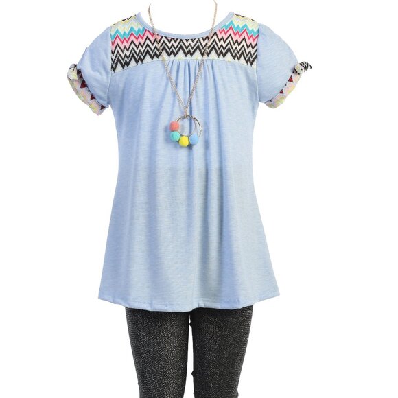 Short Sleeve Top T-Shirt + Legging Tight Pant and Matching Necklace.
