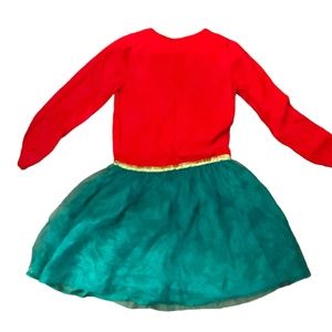 Perfect for that ugly sweater party for an adult to wear or for a little girl to wear as a dress! A kids size XL (12-14) holiday sweater dress with green tutu and golden bow detail!