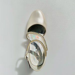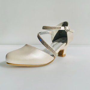 Little Girl PU Rhinestone Mary Jane Kitten Heel Pump (Ivory Leatherette)