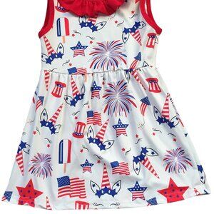 Cute Sleeveless Ruffle Neckline Unicorn Firework 4th of July Themes Tank Top Dress