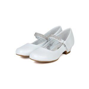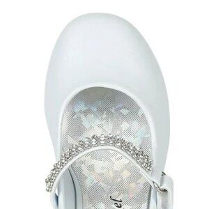 Little Girl/Big Girl Round Toe Rhinestone Strap Kiddie Heel Pump - White PATENT