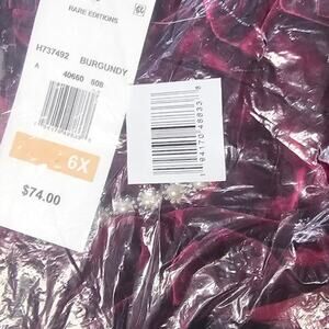 Little Girls Cap Sleeve Fit Flare Velvet Bodice with Bow Dress Burgundy 6X NWT