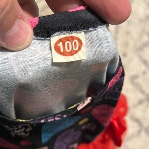 Little Girls Colorful Heart Print Dress with Red Tulle Skirt Size 100