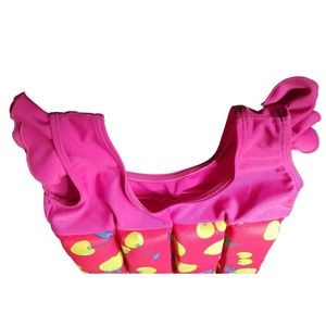 Little Girls Pink Green Flotation Swim Suit Size M Strawberry Cherry Ruffles. In like new condition, shows little wear but do not believe it has ever been worn.