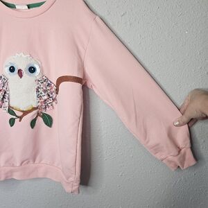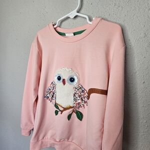 Little Girls Pink Sweatshirt 9T Owl Animal Long Sleeve Girly Fun Textured