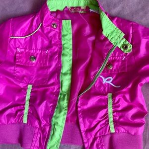 ROCAWEAR girls Hot Pink Lime Full Zip Jacket Sz 2T NICE. Condition is Pre-owned but overall very good. Adorable bright vibrant colors!