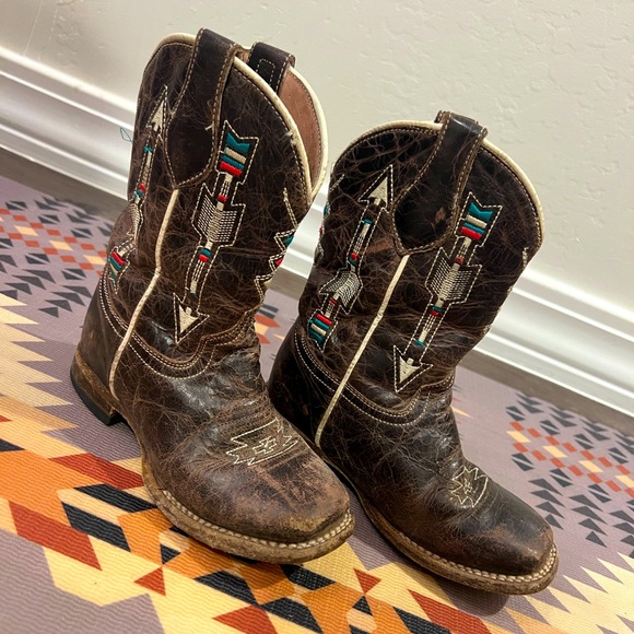 Good used condition, well made boots with lots of life left. Cute square toes with arrows.
