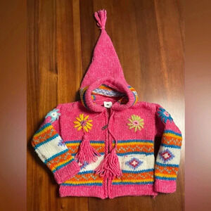 Little Girls Wool Blend Zip Up Cardigan. 50% Wool/50% Cotton. No Brand other than the Turtle Logo that I cannot find anywhere. No Size Tag, measurements are: