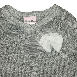 Little LASS Grey Knitted Sweater with Sheer Accent on Back and Bow