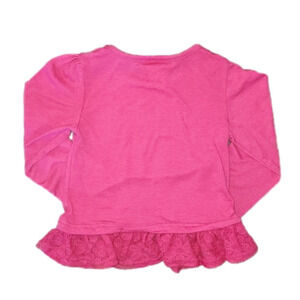 Little LASS Pink Long Sleeve Tee with Lace Ruffle Bottom and Cat on Front