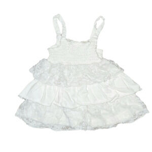 Little LASS White Multi-Tier Fabric and Lace Ruffle Tank with Bow
