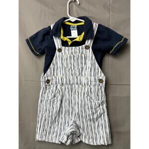 Little Lad Toddler Boy Striped Shorts Overalls and Blue Shirt, Size 24 months