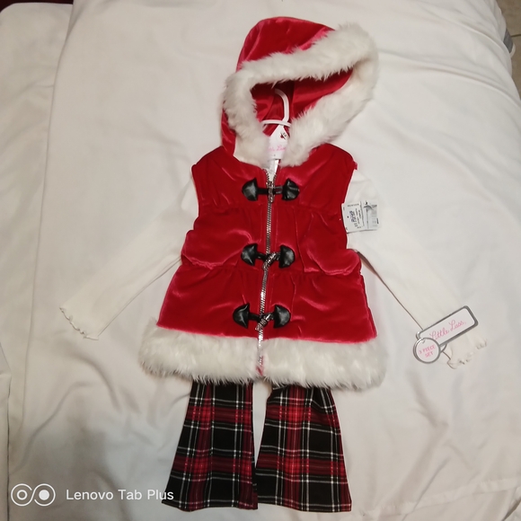 Little Lass 3 Piece Red and White Plaid Girls Set, Size 24 Months New With Tags