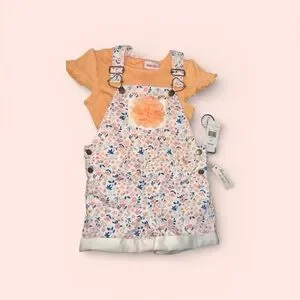 Little Lass 4t girl’s 2 piece short floral overalls outfit NWT