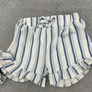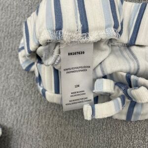 Little Lass Baby Girls Blue White Striped Ribbed Ruffle Short Set 12M RN167639