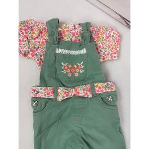 Little Lass Baby Girls Overalls and Top Floral Print Green Outfit Size 12 Months