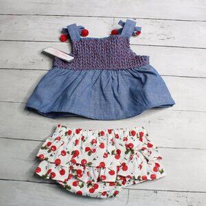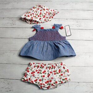 Little Lass Baby Girl's Short Set Bloomers Hat Size 0-3 Months Cherry Smocked