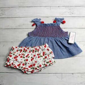 Little Lass Baby Girl's Short Set Bloomers Hat Size 3-6 Months Cherry Smocked