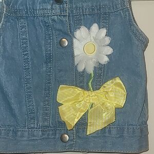 Little Lass Blue Denim Vest Daisy And Bow Embroidery Snap Buttons LOT H