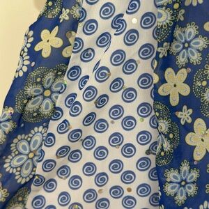 Charming dress with floral design. Features blue and yellow hues. Perfect for any occasion.