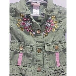 Little Lass Denim Snap Down Jacket 12M Green Floral Embroidery